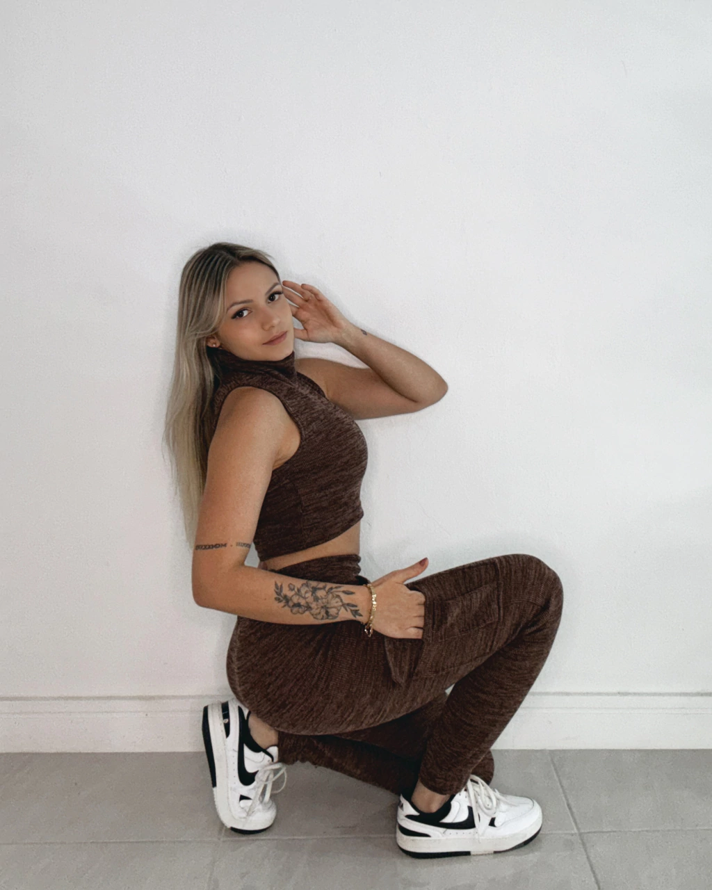 Os conjuntos não podem faltar por aqui e nesse drop não seria diferente. Quando pensamos em look confortável para o dia a dia, ele é a escolha. Pensado para Outono e Inverno, seu tecido é um moletom cotelê bem grossinho mas sem deixar de ser “leve” e confortável. O cropped possui gola bem alta que pode ser dobrada para ficar mais baixa. A calça tem design cargo e jogger, com bolsos laterais em cima e utilitários funcionais mais embaixo. Perfeito para um aerolook, para receber amigos em casa e para o dia a dia. Nas cores cinza e marrom.